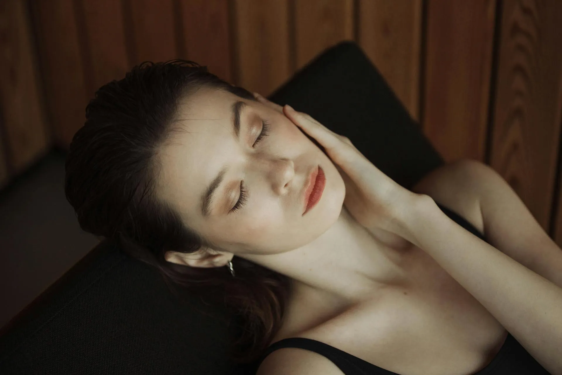 Lege deine Zeigefinger sanft auf deine geschlossenen Augenlider.